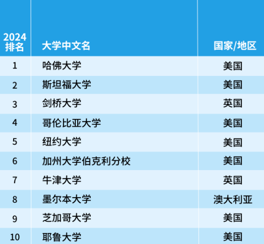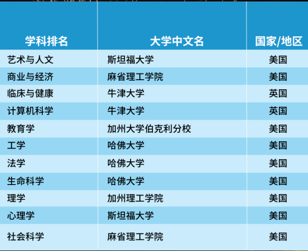 排在首位的依舊是美國斯坦福大學,耶魯大學和哥倫比亞大學今年躋身前十,而愛丁堡大學則跌出前十名,排名降至第12位。